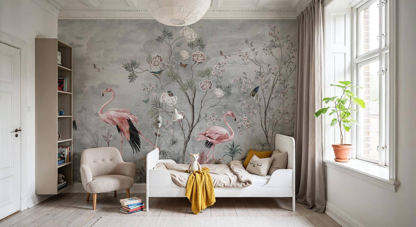Flamingo Gri Arka Plan Duvar Kağıdı